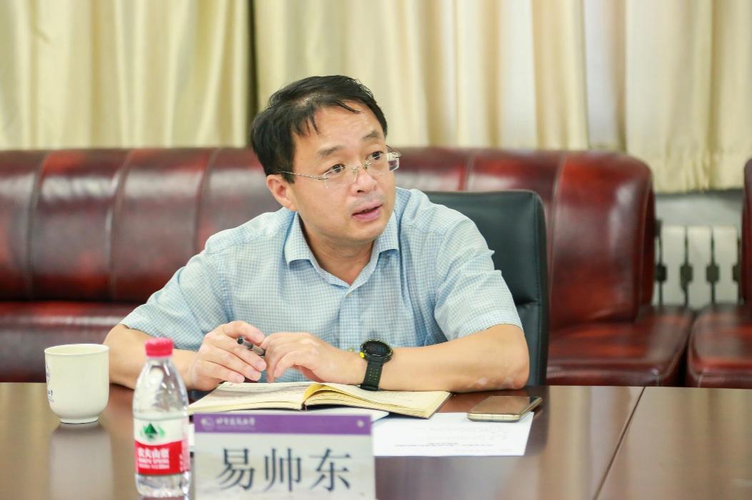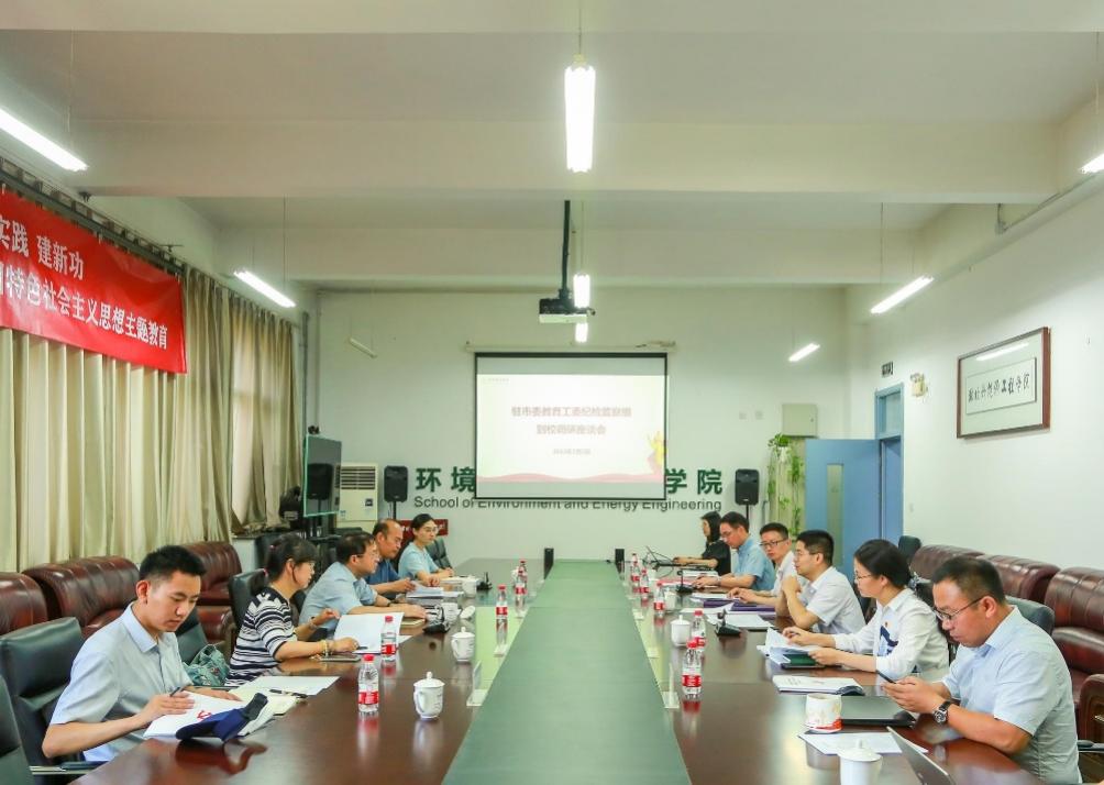 7月5日下午,驻市委教育工委纪检监察组组长易帅东同志带队来校调研。校党委书记李军锋、党委副书记陈刚、纪委书记薛晏、副校长朱静参加会见。纪检监察办公室、党建工作处(巡察办公室)、环能学院等相关单位负责人参加调研座谈。