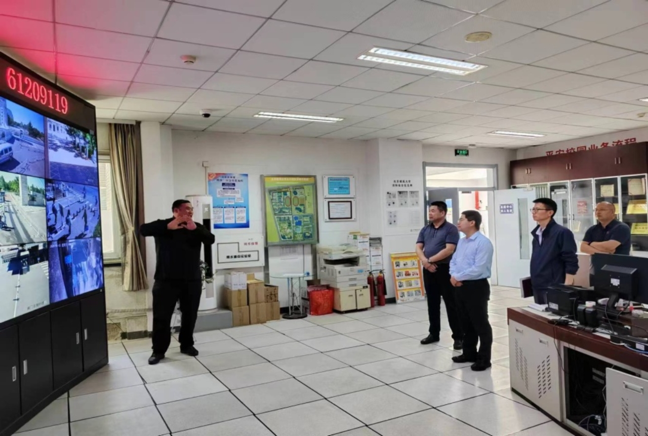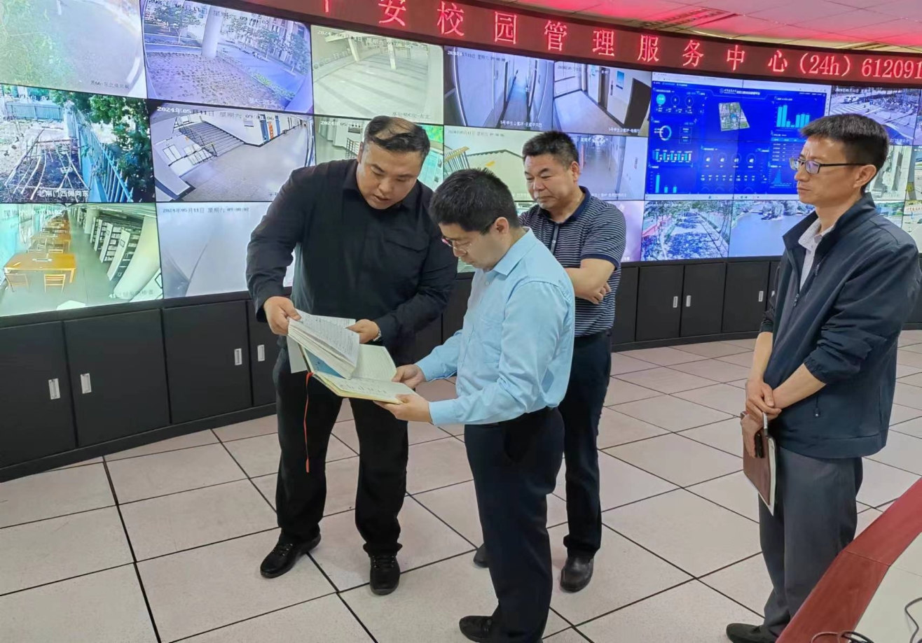 座谈会前,薛晏对学校平安校园管理服务中心建设情况,尤其对技防建设及消防设施运行等进行现场监督检查。